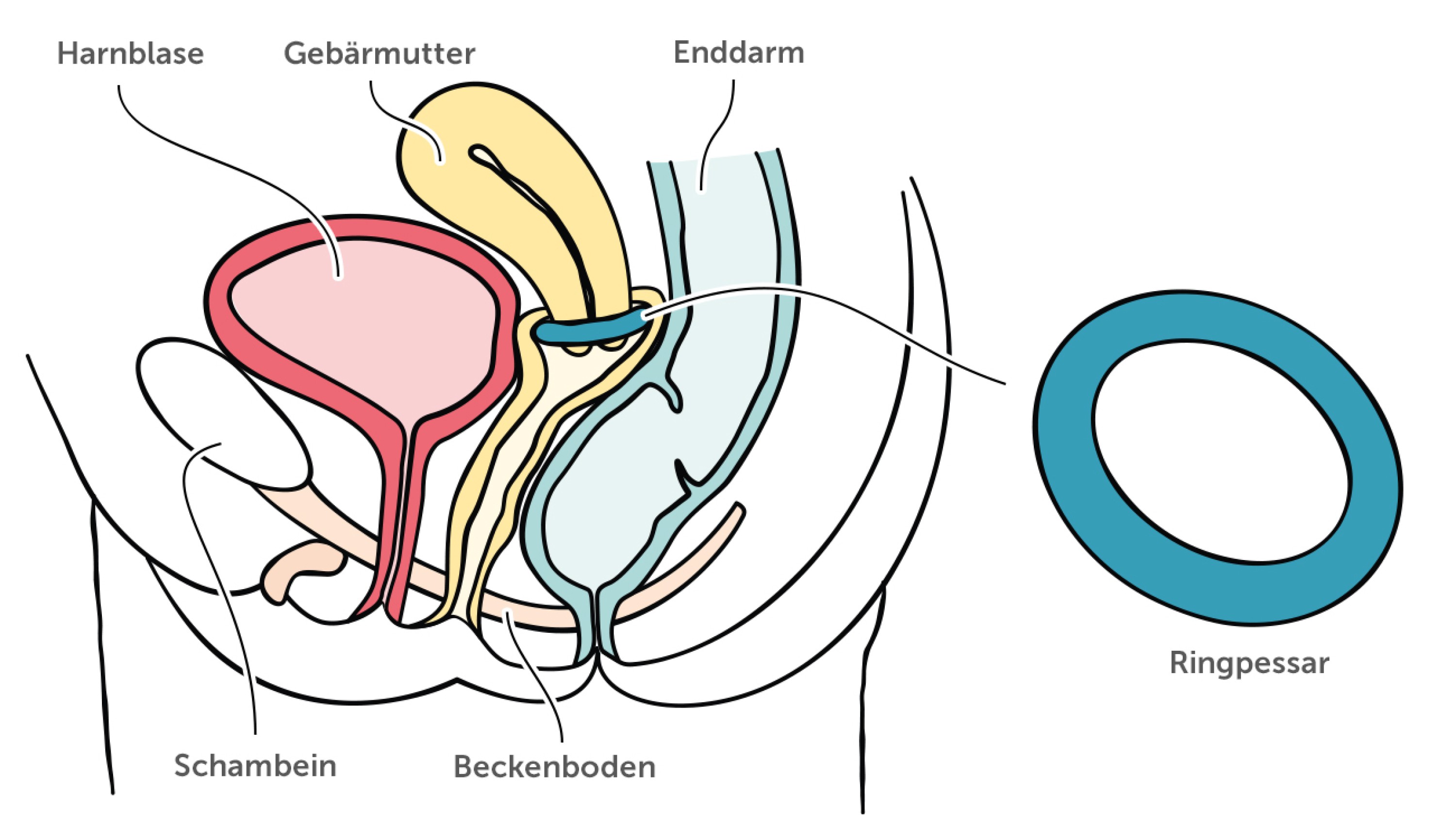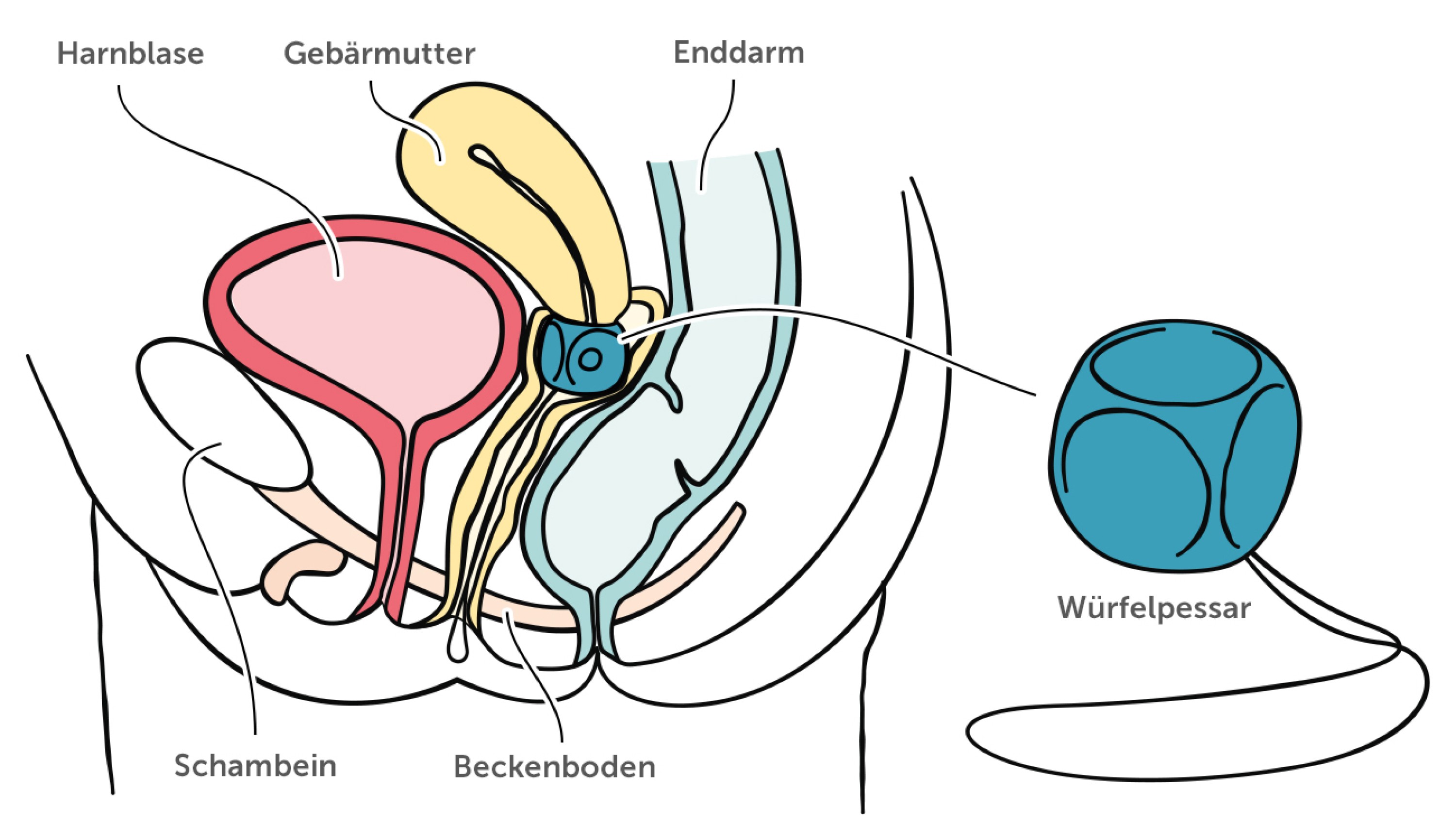 Die Nutzung von Pessaren erfolgt möglichst in Kombination mit anderen Maßnahmen, beispielsweise dem Training des Beckenbodens. Die Beckenbodenmuskulatur befindet sich im unteren Bereich des Beckens und stützt unter anderem die Gebärmutter und Blase. Wir benutzen sie bewusst, wenn wir den Harndrang zurückhalten. (1) Ist die Muskulatur zu schwach, kann sie ihre Aufgabe nicht mehr ausreichend erfüllen. Regelmäßige Übungen stärken sie und die Kontinenz verbessert sich.