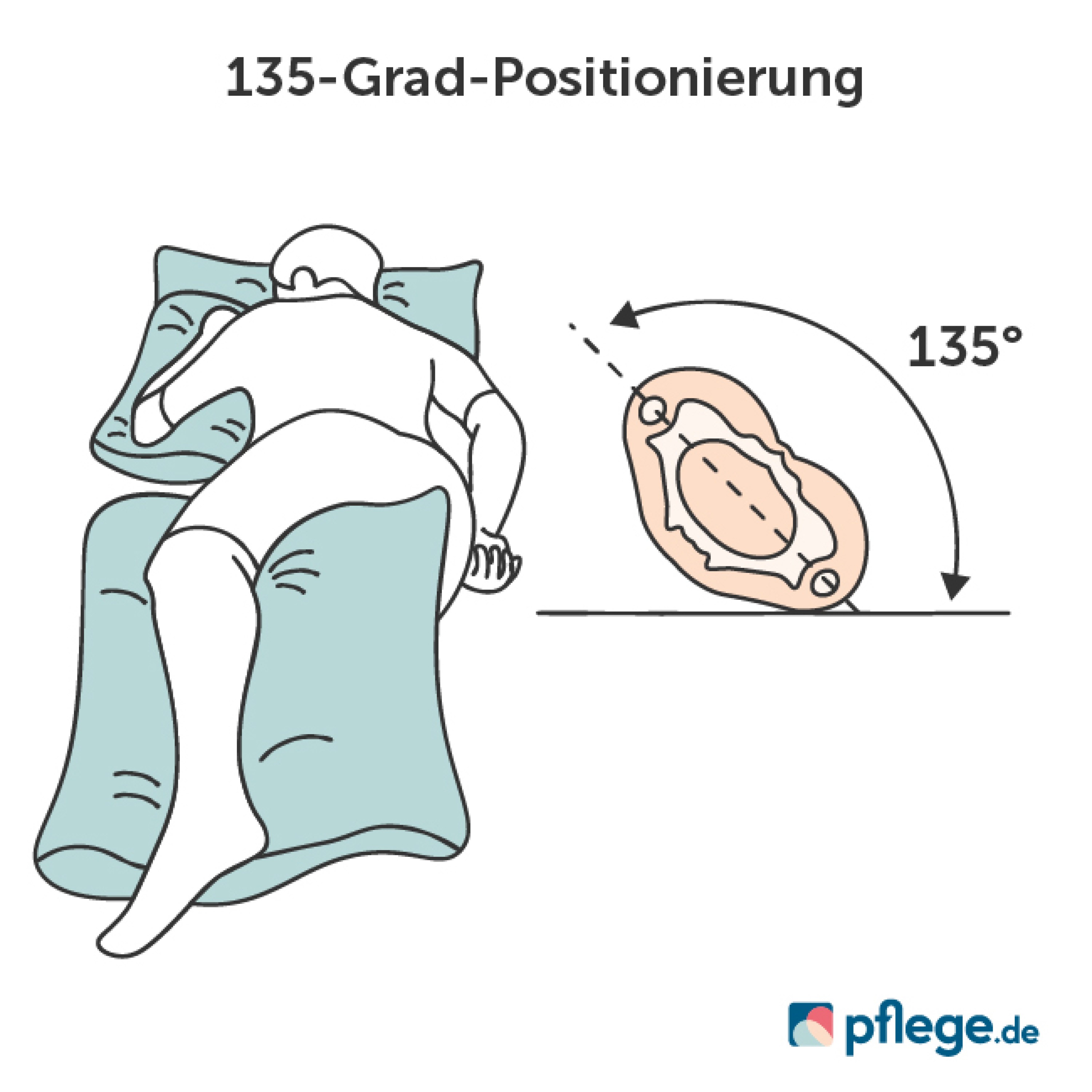 Stand der aktuellen Forschung ist die sogenannte 30-Grad-Schräglagerung. Sie gilt als risikoärmste Positionierungsmöglichkeit und beugt Druckschäden an anderen Körperstellen vor. Da der Betroffene dabei nahezu auf dem Rücken liegt, kommt diese Methode den meisten Personen sehr entgegen.