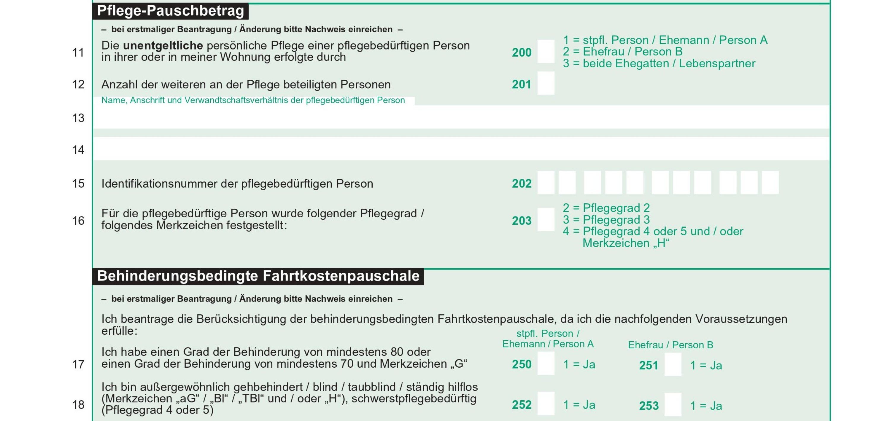 Was viele vergessen und für Pflegebedürftige interessant sein kann, ist der Behinderten-Pauschbetrag. Es kann sich lohnen, den Grad der Behinderung überprüfen zu lassen. Wer den Behinderten-Pauschbetrag in Anspruch nimmt, kann daneben allerdings keine Pflegekosten mehr absetzen. Bei Heimunterbringung lohnt es sich in der Regel eher, die Pflegekosten abzusetzen anstatt den Behinderten-Pauschbetrag in Anspruch zu nehmen.