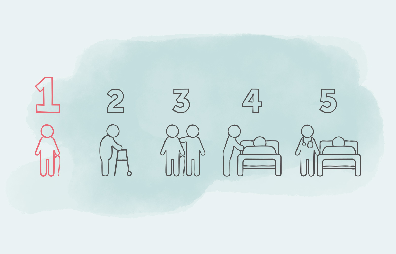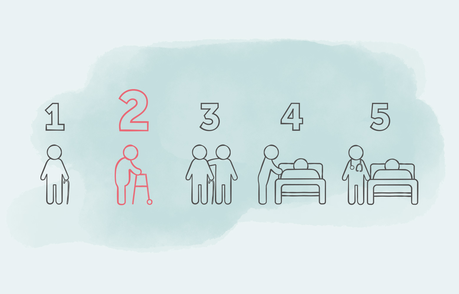 Die Pflegegrade 1-5 werden nach einem festen Verfahren zugeteilt. Wie hoch der Pflegegrad für eine Person ist, wird bestimmt durch die eingetretenen Einschränkungen bei ihrer Selbständigkeit.